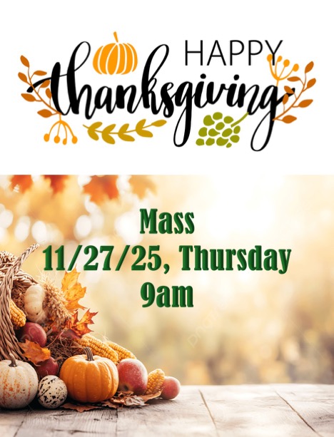 Nov 27, Thu: Thanksgiving Mass at 9am & No Adoration