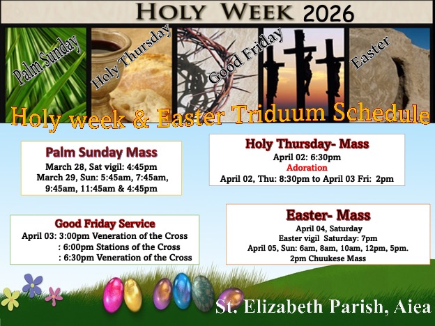 St. Elizabeth parish welcomes you with full of love and aloha. Your presence is very important here. Please come and experience God’s Love, His Mercy, and His Compassion. You will find peace, joy, and tranquility as you enter this holy place with the heart of faith. Jesus loves you. Come and enjoy His lovely presence.