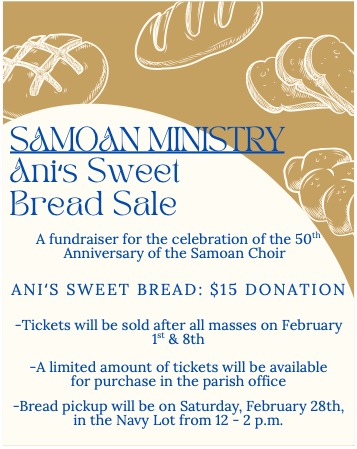Feb 7, Sat:   Religious Education: 8:30am-10am, Confession 9am-10am & Vigil Mass at 5pm